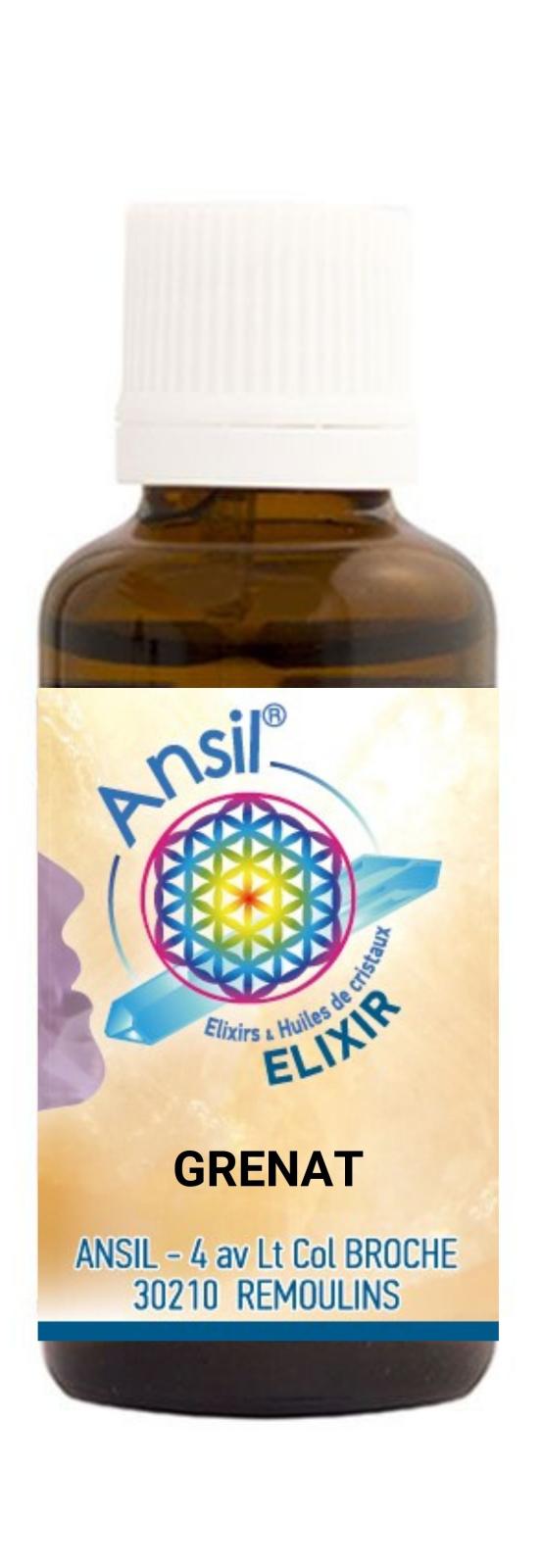 Ingrédients : Eau purifiée, silice végétale (prêle, ortie, bambou, millet brun, renouée des oiseaux, pissenlit, glycérine végétale, oléorésine de vanille) alcool 14% vol. Potentialisé par des cristaux de Grenat
